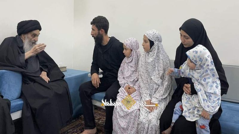 وخلال استقباله العائلة، أبدى السيد السيستاني أسفه العميق لعجز العالم أو تعاجزه عن إيقاف الحرب على غزة.