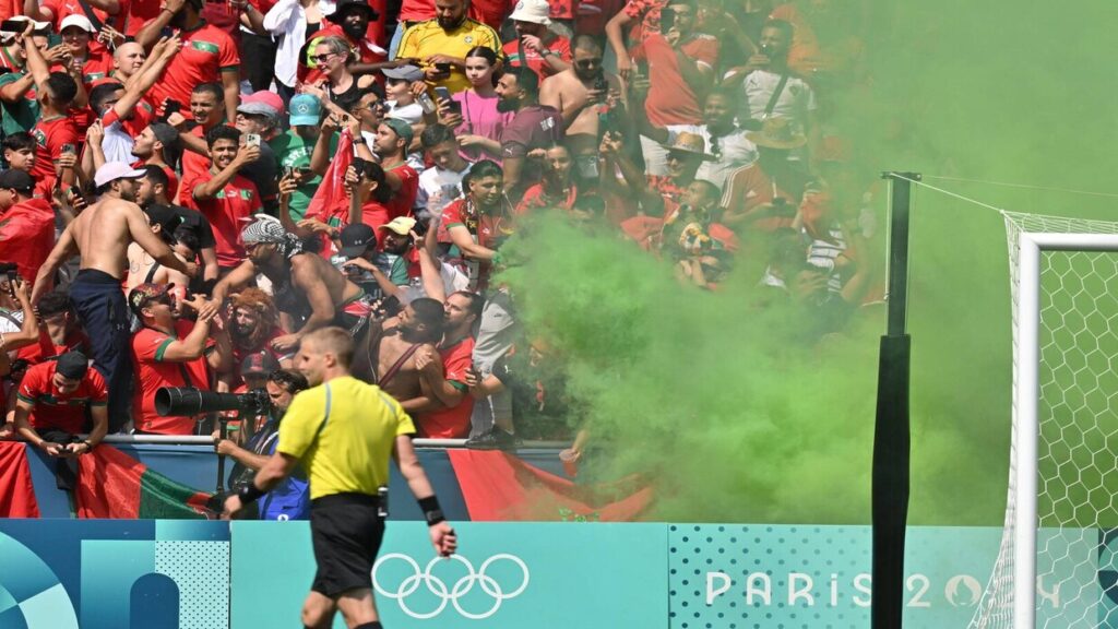 وأشعلت الجماهير المغربية الألعاب النارية، وألقتها على مقاعد بدلاء الأرجنتين، بالإضافة لقذف زجاجات المياه على راقصي التانغو، خلال اقتحام أرض الملعب.