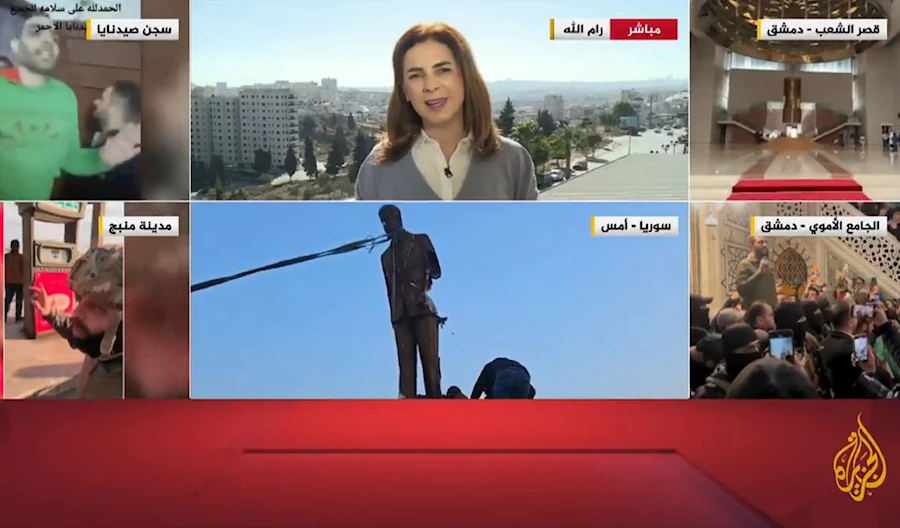هكذا، مثّل سقوط الاسد «الفرصة الذهبية» لـ«الجزيرة» لاستعادة جمهورها السوري الذي خسرته إبان «الثورة»، وقسّمت شاشتها إلى أكثر من ثماني كاميرات موزعة على مختلف المدن وعنونت تغطياتها بـ «سوريا ما بعد الأسد». ورافقت تحرير السجناء من معتقل صيدنايا، وتوقفت عند فرح السوريين في الشوارع بعد سقوط النظام وتصدّرت تصريحات أحمد الشرع/ الجولاني عناوين الشاشة القطرية.