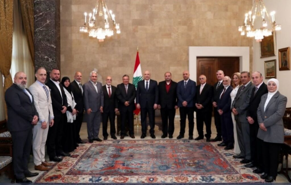 زار وفد من نقابة المعلمين في المدارس الخاصة رئيس الجمهورية العماد جوزاف عون في القصر الجمهوري، والقى النقيب نعمه محفوض كلمة، أمام رئيس الجمهورية، طالب فيها، بدعمِ المعلّمين في جميع القطاعاتِ الرسميّةِ والخاصّة، وبإعادةِ الأموالِ من المصارفِ إلى صندوقِ التّعويضات، وإصدارِ مرسومِ مجلسِ إدارتِه الجديد، وإيجادِ حلٍّ جذريٍّ لرواتبِ الأساتذةِ المتقاعِدين، ثمّ العمل بعدَها على إقرارِ سلسلةِ رتبٍ ورواتب.
