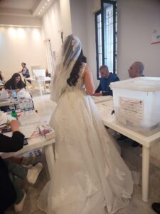 شاركها فيسبوك تويتر لينكدإن بينتيريست البريد الإلكتروني بالصّورة ــ ”عروس“ تدلي بصوتها داخل مركز الاقتراع في حالات! انتشر عبر وسائل التواصل الاجتماعي صورة لناخبة تدلي بصوتها داخل مركز الاقتراع في حالات ــ “صالون كنيسة مار جرجس”، وهي ترتدي فستان الزفاف.