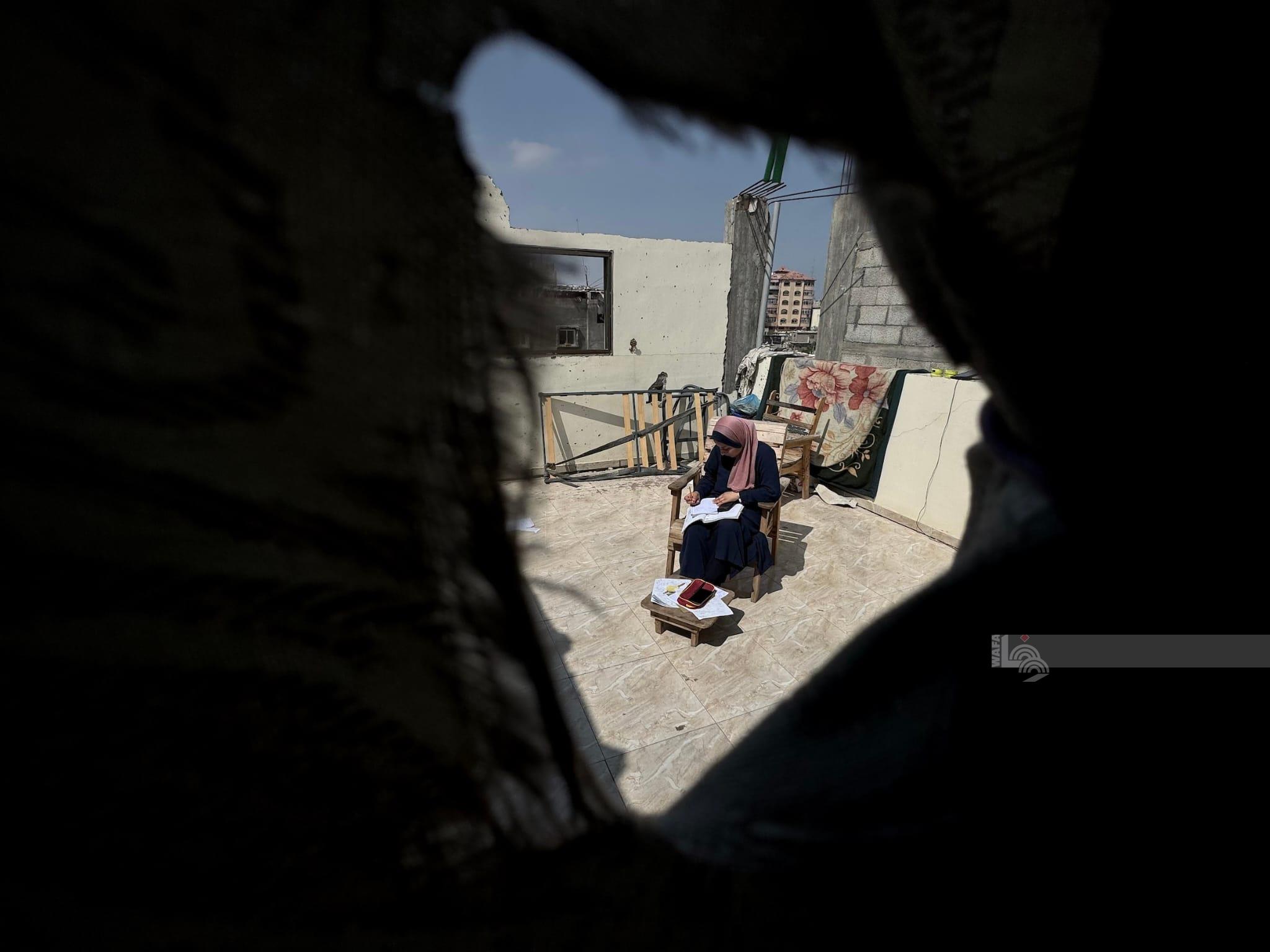 رغم ضعف شبكة الإنترنت والانقطاعات المتكررة في الخدمة، ترفض سارة قنان (17 عامًا) الاستسلام. تفتح حاسوبها المحمول كل صباح وسط الركام، تحاول الاتصال بمنصة التعليم عن بُعد، وتُمسك بقلمها بإصرار من لم يتبق له سوى الحلم.