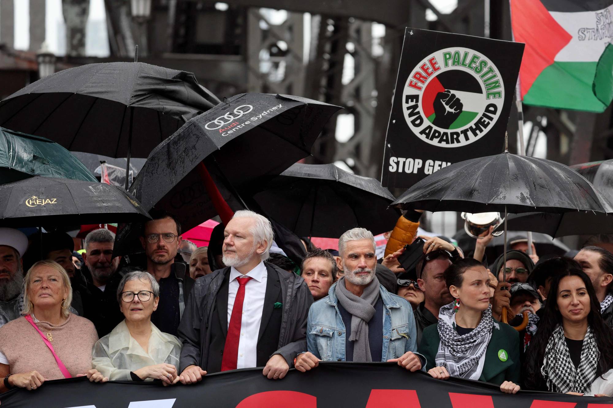 تحدَّى آلاف المتظاهرين الأمطار الغزيرة، وساروا عبر جسر هاربور الشهير، في مدينة سيدني الأسترالية، اليوم (الأحد)، مطالبين بإحلال السلام وإيصال المساعدات إلى قطاع غزة الذي مزَّقته الحرب ويعيش أزمة إنسانية متفاقمة.