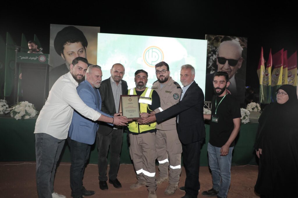 واختُتم الاحتفال بتوزيع الدروع التكريمية على مجموعة من أبناء البلدة الذين تطوّعوا خلال العدوان ضمن فرق الدفاع المدني، إضافة إلى تكريم خاص لفرقة مركز البازورية التطوعي تقديرًا لتضحياتها وجهودها المستمرة في خدمة المجتمع.