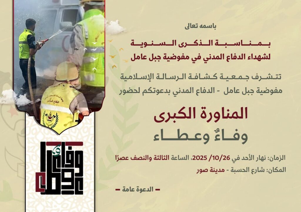 تستعدّ جمعية كشافة الرسالة الإسلامية غدًا الأحد لتنفيذ مناورةٍ ميدانيّة كبرى في مدينة صور – شارع الحسبة، وذلك استكمالًا لمسيرة الشهداء الرساليين الذين تحدّوا الموت قادةً ومسعفين، واستُشهدوا أثناء أداء واجبهم الإنساني دفاعًا عن لبنان والجنوب.