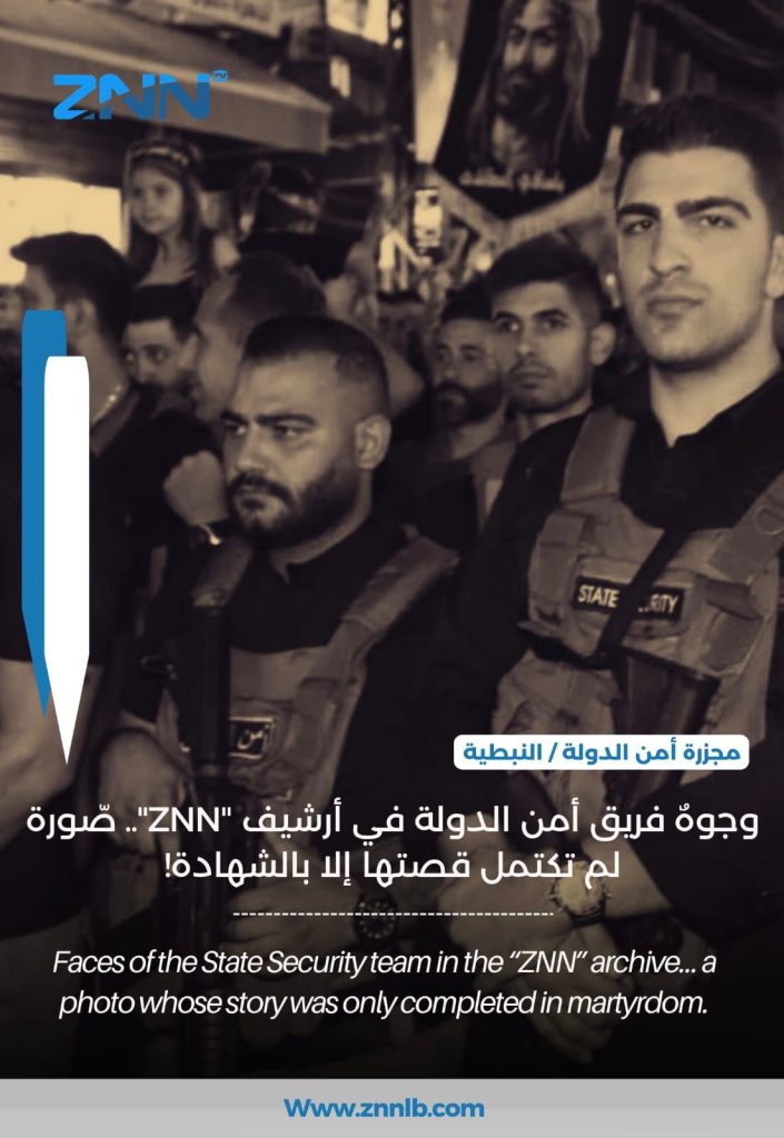في الصورة التي التقطتها عدسة (ZNN) من أرشيفها، لا يظهر مجرد مشهدٍ عابر لفريقٍ كان يؤدي واجبه، بل تختبئ خلفها سيرة رجالٍ من أمن الدولة انتهت فجأة تحت نار العدوان الإسرائيلي الذي استهدف مدينة النبطية ومحيط سراي النبطية الحكومي.