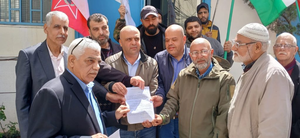 وفي ختام الاعتصام، تم تسليم مذكرة مطلبية إلى مدير خدمات الأونروا في المخيم.